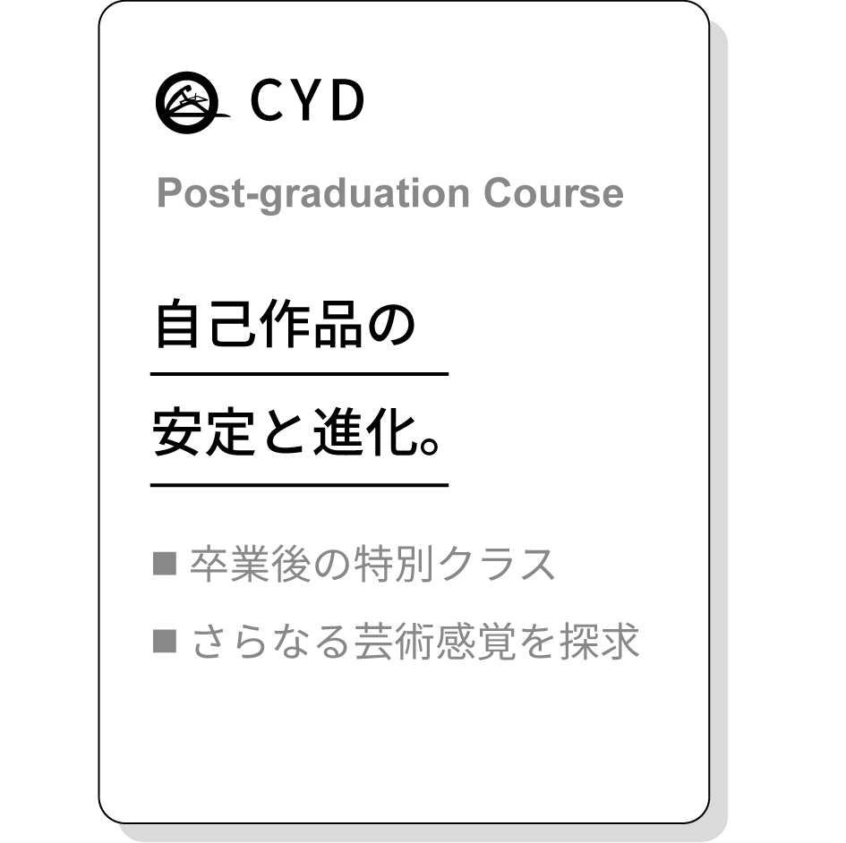 「基礎科」「本科」「研究科」の3つのクラスと卒業後の特別クラス「CYD」で段階的に基礎から学ぶことができます